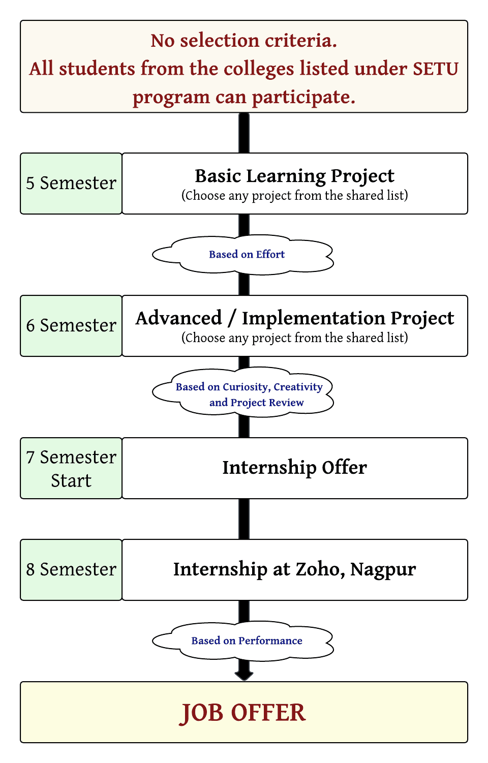» Based on effort and learning, students who are selected will be offered an internship opportunity at Zoho Nagpur in the 8th semester.